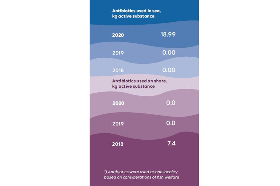 Antibiotics are seen as the last resort, only applied in situations where use has been assessed by veterinarians as necessary to handle a confirmed disease-related situation. The Group never treat fish with antibiotics critically important for human use according to the WHO (Worlds Health Organization) list published at https://www.who.int/food
