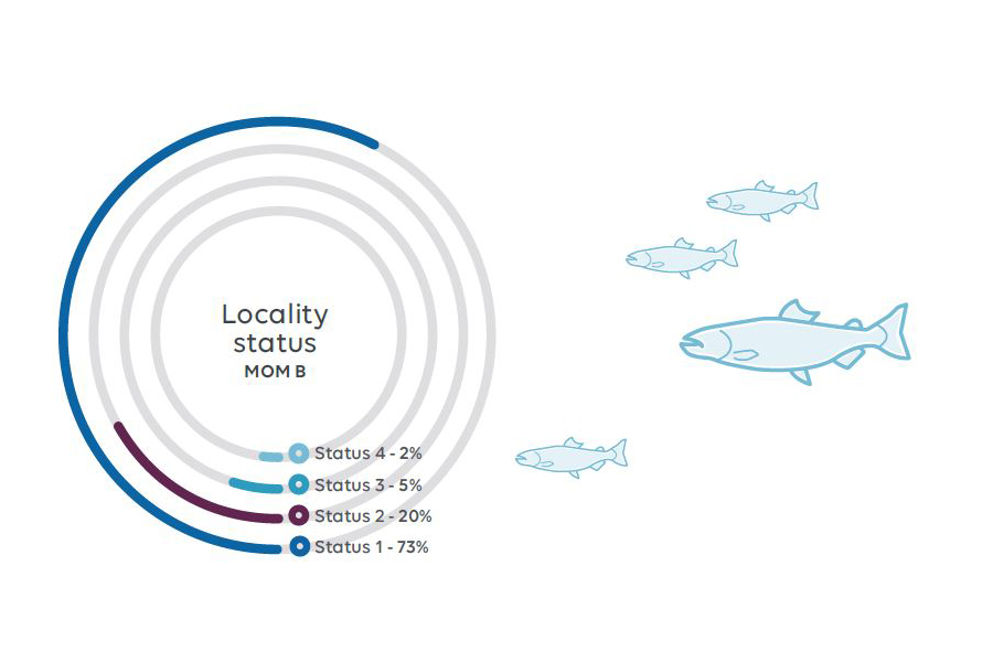 Each facility is also linked with neighboring  facilities in a zone-based cooperation to work together on topics such as lice and preventing accidental release, spread of disease, outbreaks of disease etc. MOM-B samples must always be taken before releasing fish to a location.