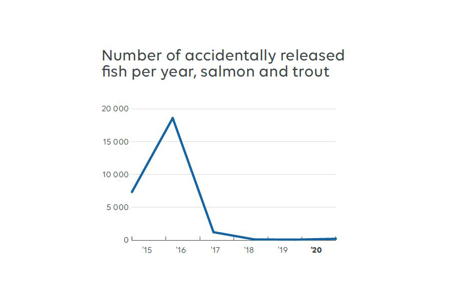 The company had a low number of fish that also escaped in 2020. The number was 208 fish, an increase of 123 fish from 2019.
